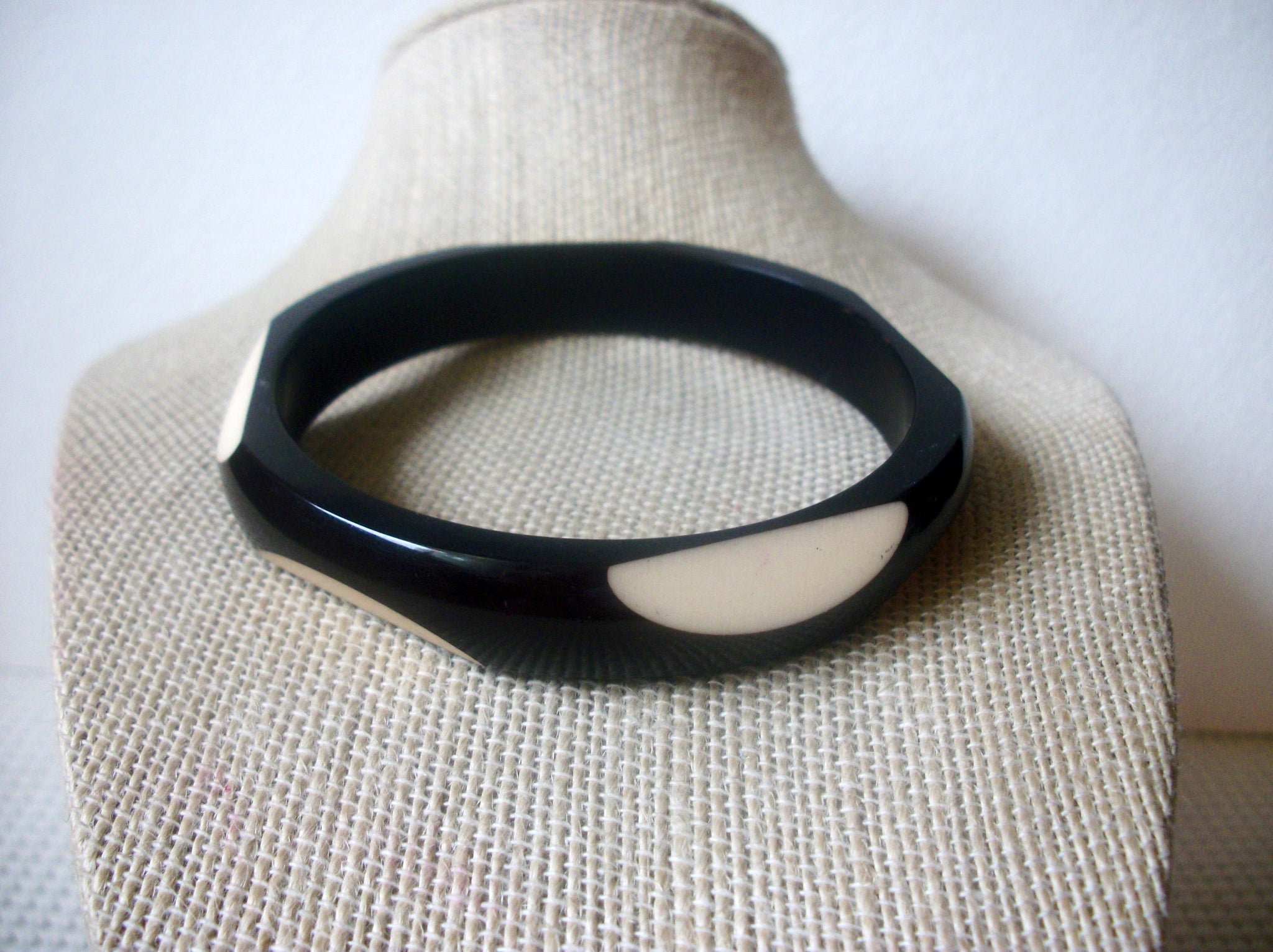 Vintage Bangle Bracelet, Darkest Brown, Cream White, Laminated Old Plastic, 70417