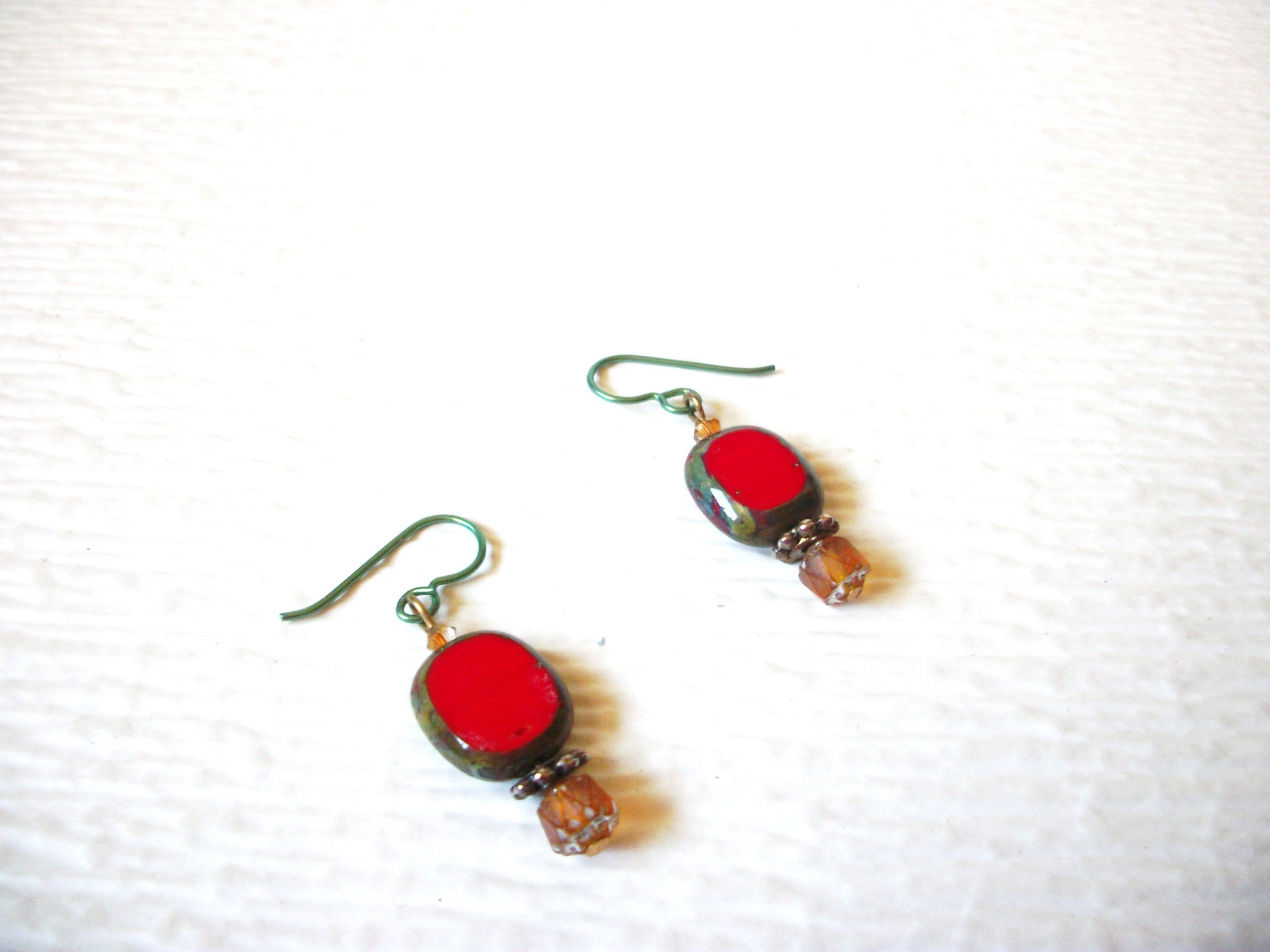 Vintage Ethnic Red Glass Dangle Earrings 121816