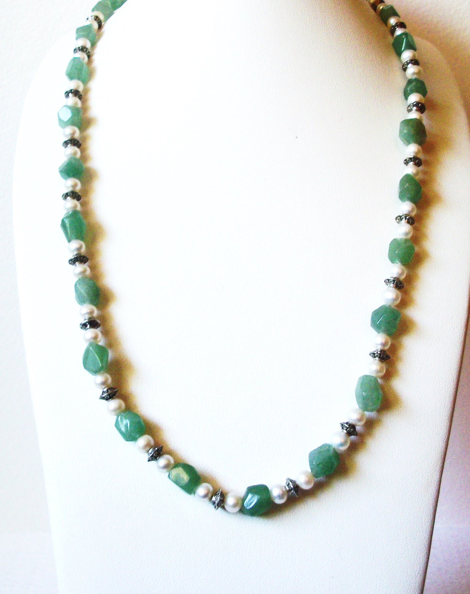 Aventurine Semi Precious Glass Pearl Necklace 122720