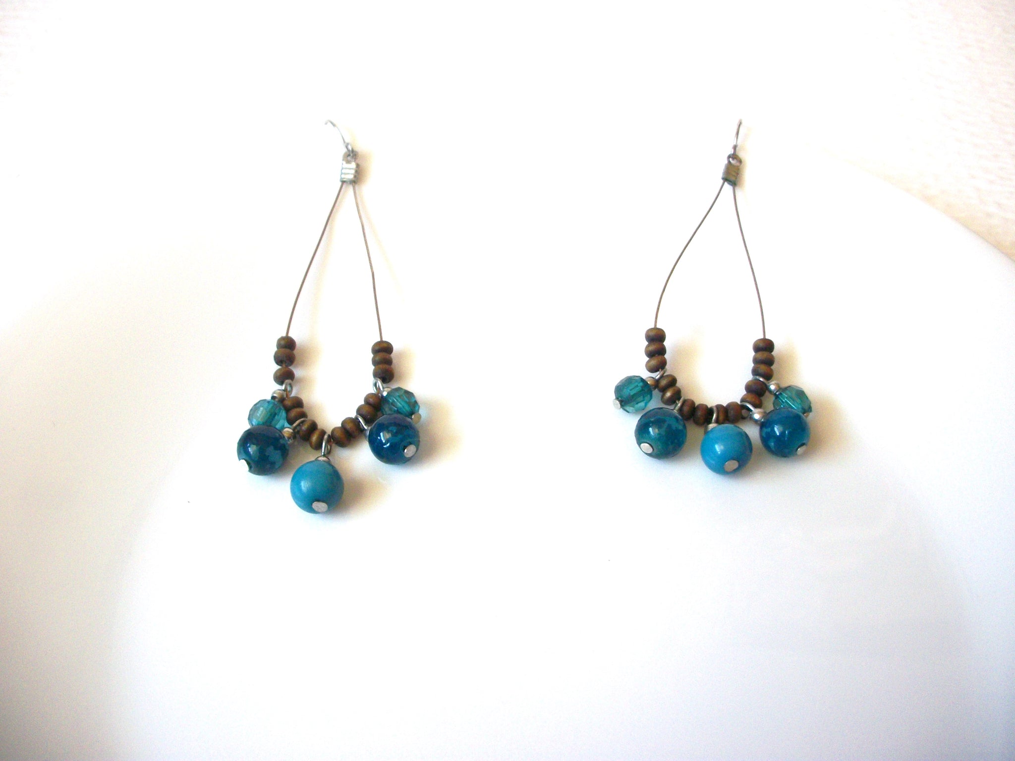 Blue Glass Wood Earrings 121720 Hand Made By Sonja