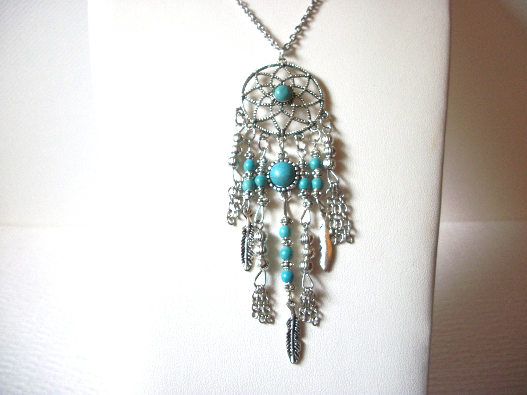 Dream Catcher Pendant Silver Toned Faux Turquoise Necklace 9216