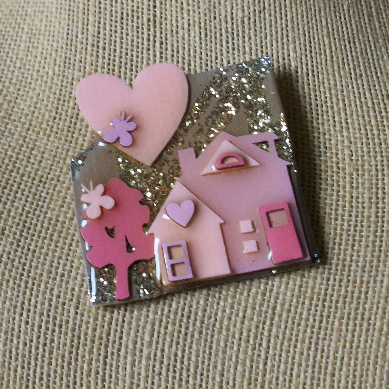 Hard To Find Vintage Lucinda House Pins, Glitter Valentine`s Day Heart Love Pink 61318
