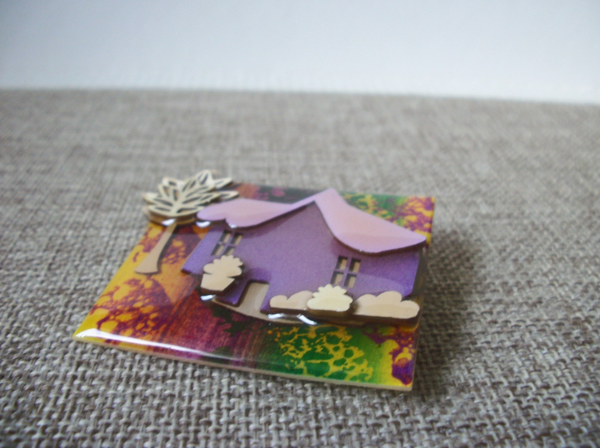 RARE Lucinda House Pins Fall Purple Lilac Cottage Flower Pots Tree Autumn Mood