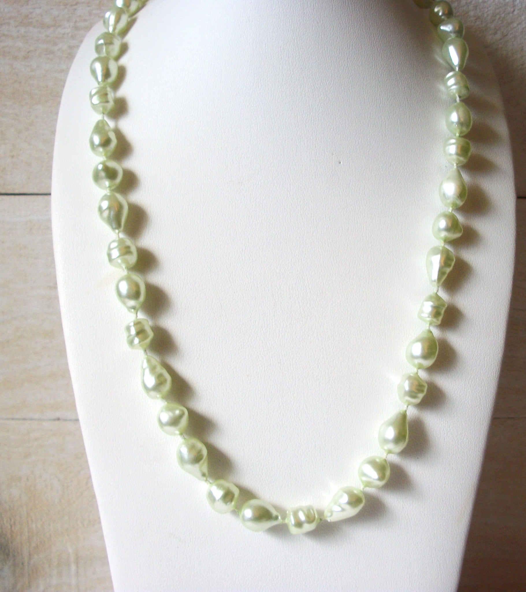 Vintage 1980s Pale Green Molded Beads Necklace 42420