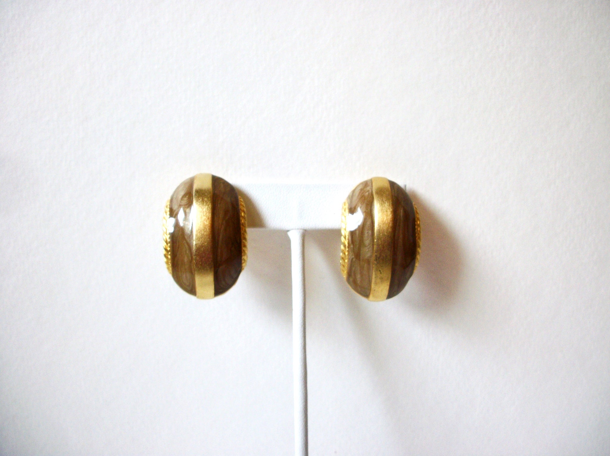 Retro High End Enameled Gold Toned Earrings 91420